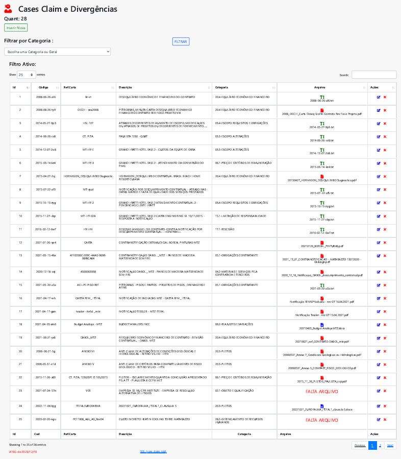 Base técnica Jurídica e diversos CASES de Claims e Litígios. Relatórios efetivamente descritivos com aspectos técnicos, comerciais e/ou jurídicos , bem como relação de Registros formais de Vistórias e Cases.